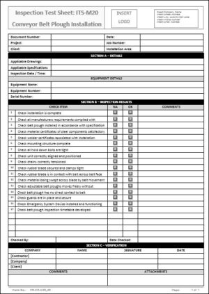 Inspection Test Sheet – ITS-M20 – Conveyor Belt Plough