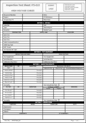 Inspection Test Sheet – ITS-E22 – High Voltage Cables