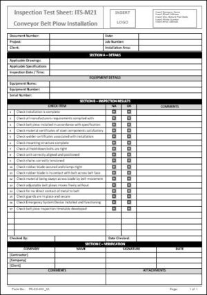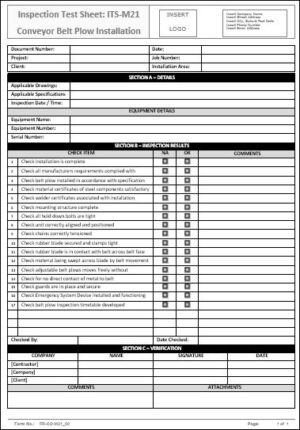 Inspection Test Sheet – ITS-M21 – Conveyor Belt Plow