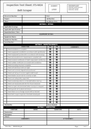 Inspection Test Sheet – ITS-M24 – Belt Scraper