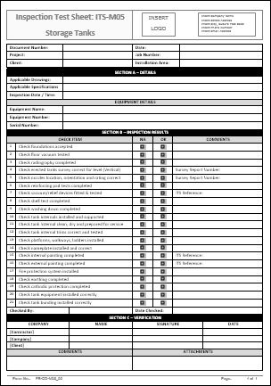 Inspection Test Sheet – ITS-M05 – Storage Tanks