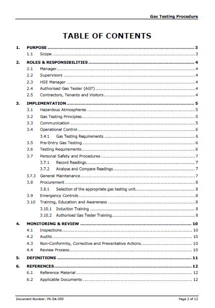The purpose of this Procedure is to outline the minimum requirements for managing risks associated with gas testing. This Procedure includes Gas Testing principles, Communications, Test Requirements, Maintenance, Emergency Controls and Training.