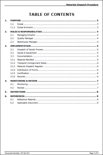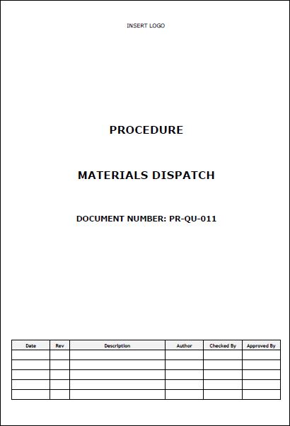 The Materials Dispatch Procedure defines the process to record and control the dispatch of all outgoing materials to both internal and external customers
