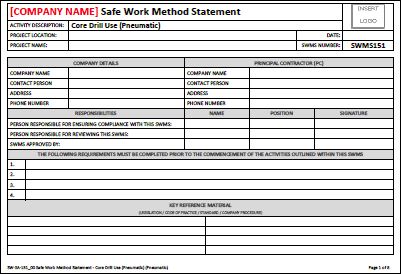 This Safe Work Method Statement outlines the general requirements to undertake Pneumatic Core Drill activities in a safe and structured manner.