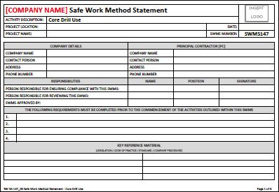 This Safe Work Method Statement outlines the general requirements to undertake Core Drill activities in a safe and structured manner.