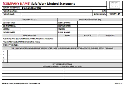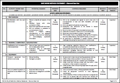 This Safe Work Method Statement outlines the general requirements to undertake Diamond Saw activities in a safe and structured manner.