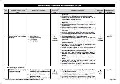 Safe Work Method Statement - Electric Power Tool Use