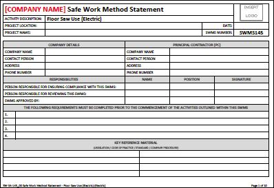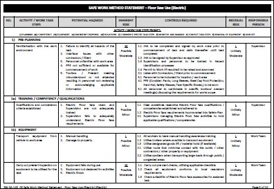 This Safe Work Method Statement outlines the general requirements to undertake Electric Floor Saw activities in a safe and structured manner.
