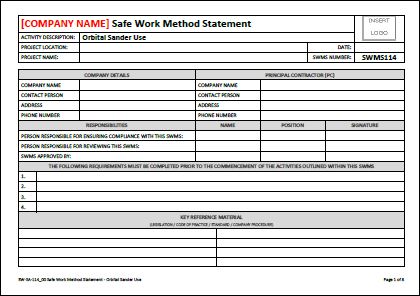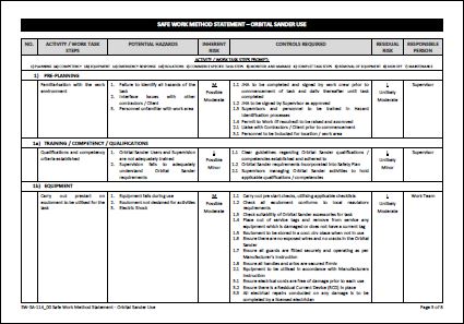 This Safe Work Method Statement outlines the general requirements to undertake Orbital Sander activities in a safe and structured manner.
