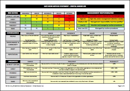 This Safe Work Method Statement utilises the AllSafety Risk Matrix and all activities are risk assessed based on the inherent and residual risk model.
