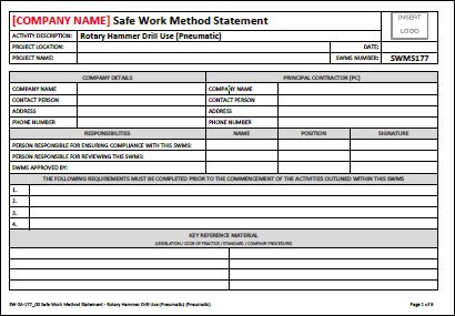 This Safe Work Method Statement outlines the general requirements to undertake Pneumatic Rotary Hammer Drill activities in a safe and structured manner.