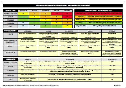 This Safe Work Method Statement utilises the AllSafety Risk Matrix and all activities are risk assessed based on the inherent and residual risk model.