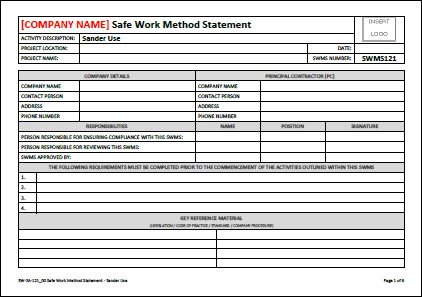 This Safe Work Method Statement outlines the general requirements to undertake Sander activities in a safe and structured manner.