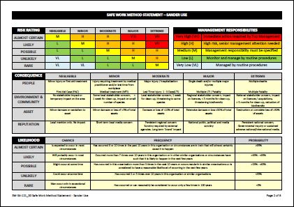 This Safe Work Method Statement utilises the AllSafety Risk Matrix and all activities are risk assessed based on the inherent and residual risk model.