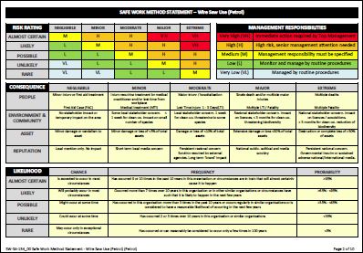 This Safe Work Method Statement utilises the AllSafety Risk Matrix and all activities are risk assessed based on the inherent and residual risk model.
