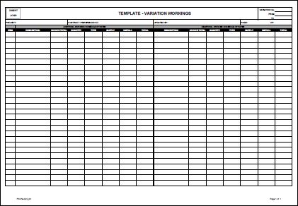 The Variation Workings Template provides a mechanism for Client or Contractor to accurately assess the financial implications of variations raised and submitted for approval. The template provides prompts to add and delete invoice totals and supply and install schedule of rate costs.