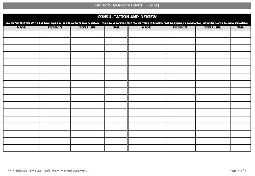 The Safe Work Method Statement template provides a framework to ensure all routine and non routine activities can be completed safely. This is achieved by ensuring all the associated tasks are documented, hazards are identified and applicable controls are nominated. The effectiveness of these nominated controls are determined by a two level risk assessment process (inherent risk and residual risk). This SWMS template also ensures appropriate levels of communication and consultation are in place prior to the commencement of the activity.